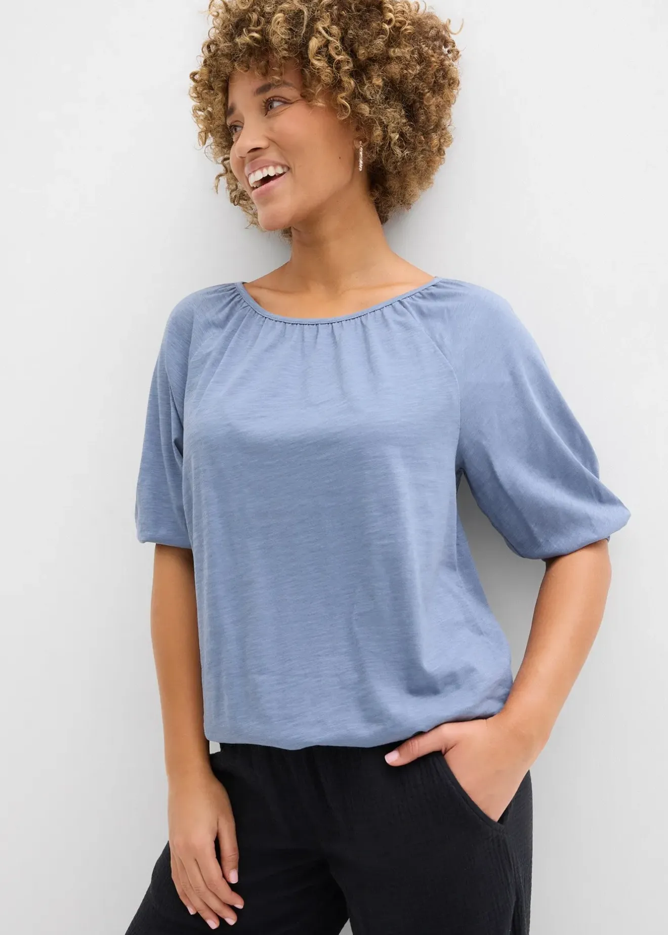 T-shirt 100% coton à finitions élastiquées confortables à la base et aux manches