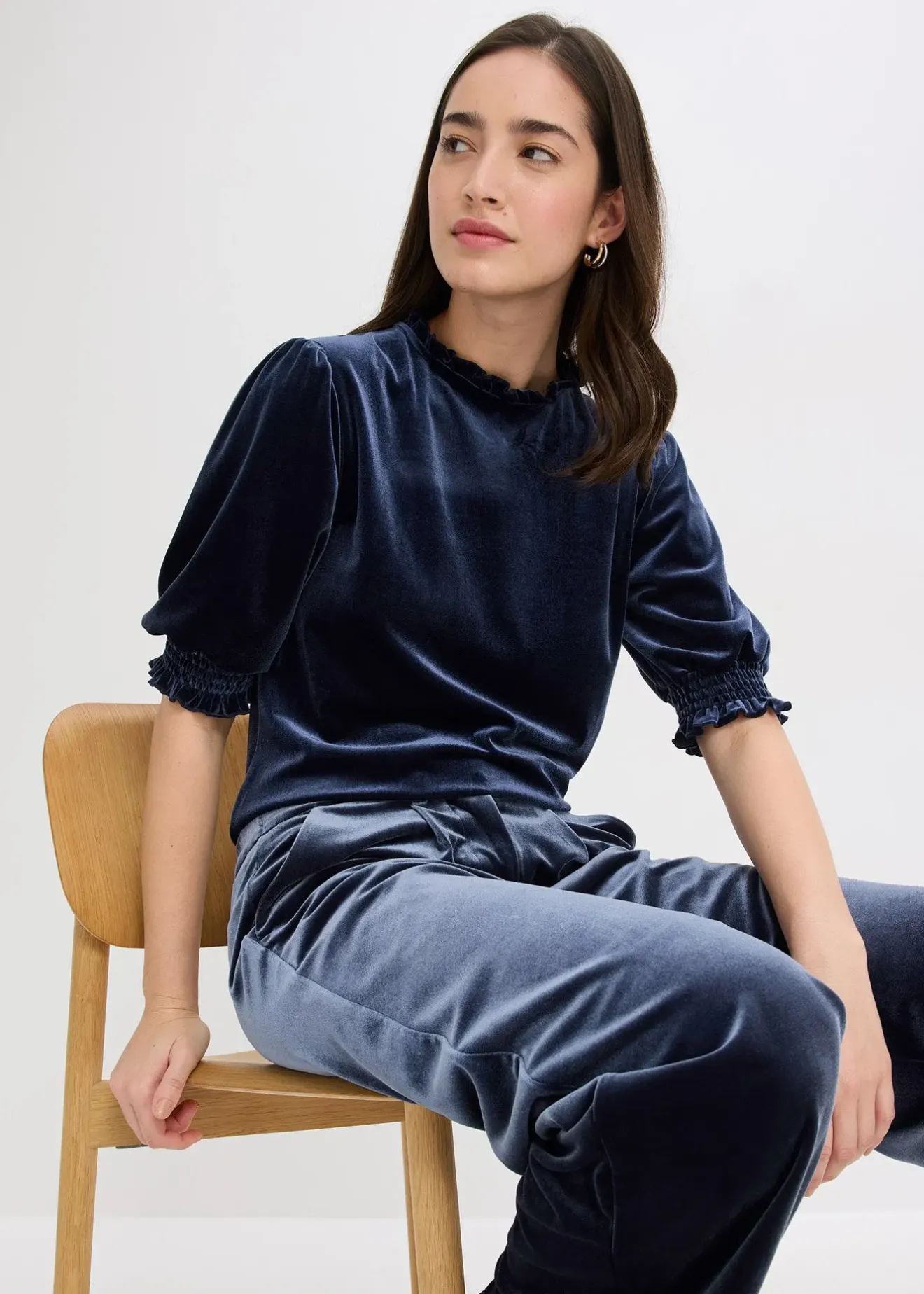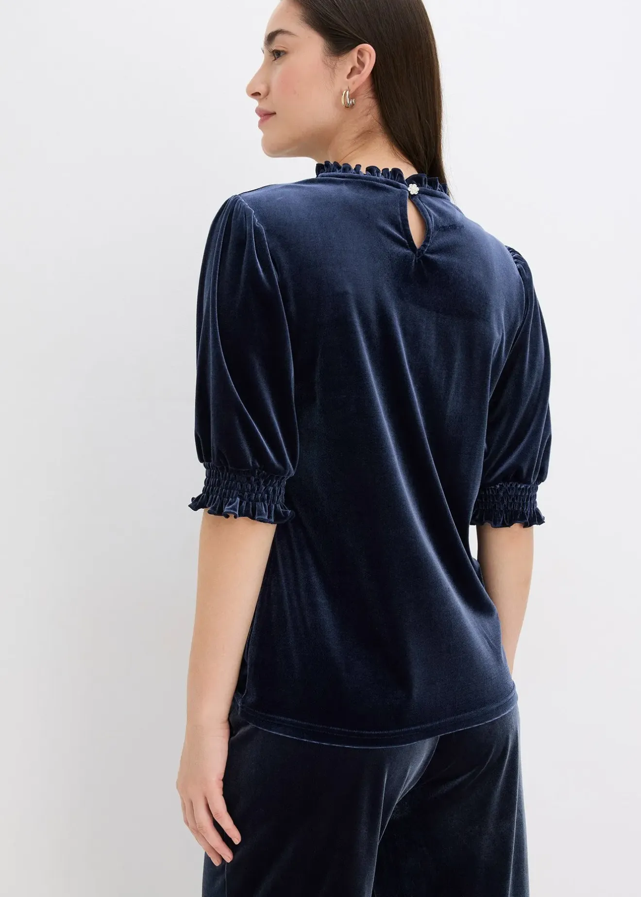 T-shirt élégant en velours avec bouton strass