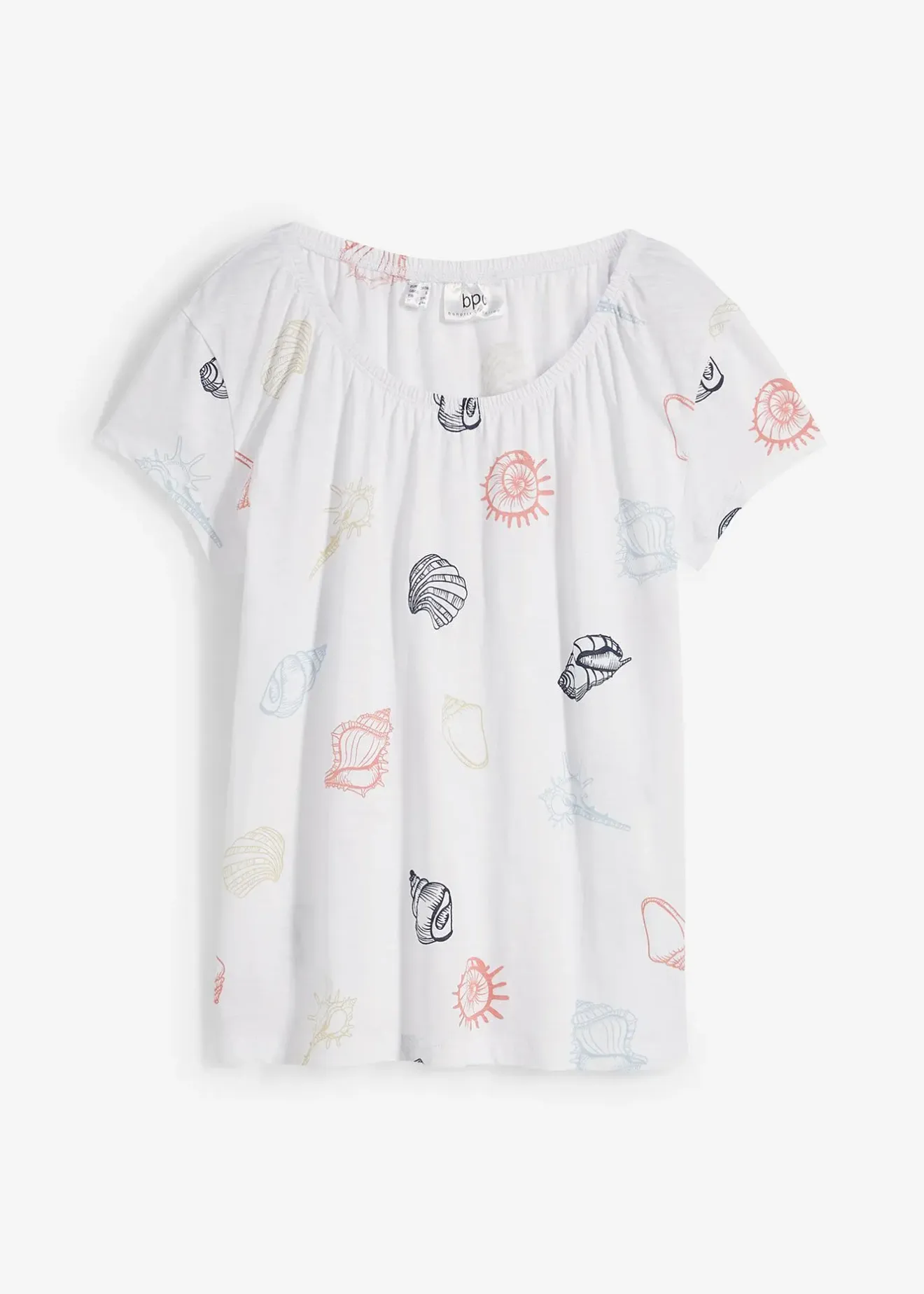 T-shirt col Carmen décontracté avec imprimé coquillage