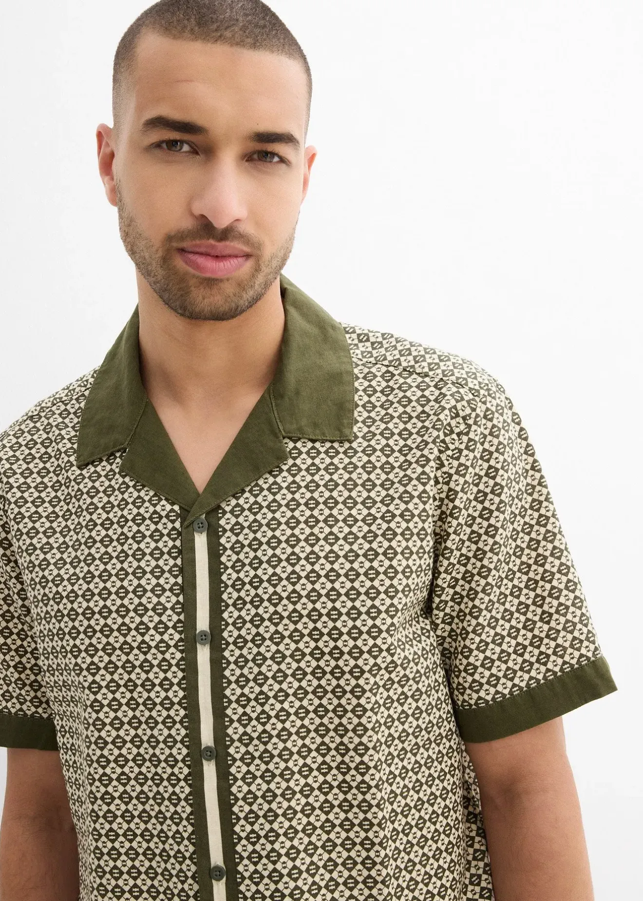 Chemise manches courtes à imprimé mode en lin majoritaire, Regular