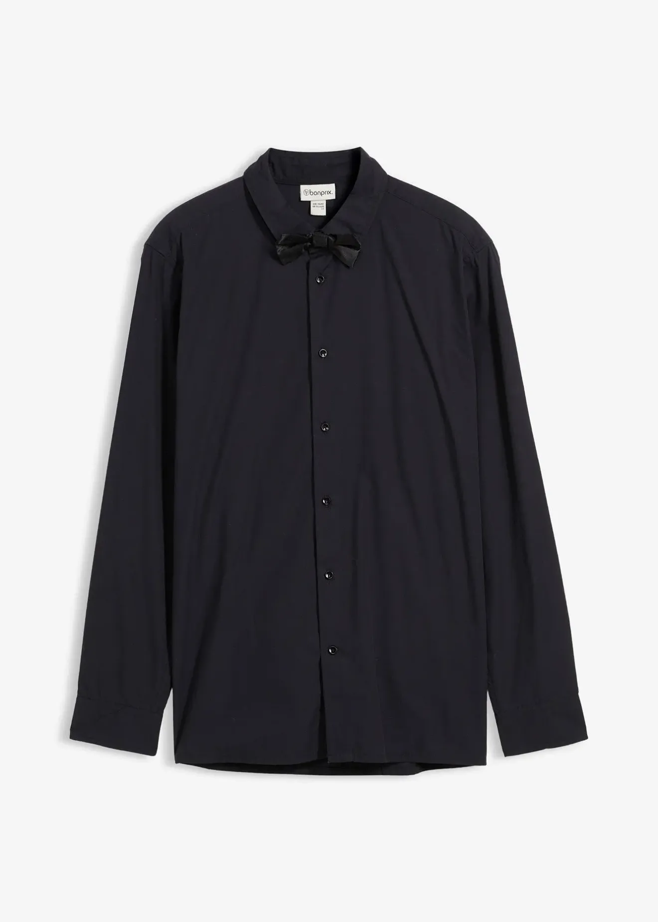 Chemise élégante à pinces/chemise classique regular avec boutons noirs et nœud papillon assorti