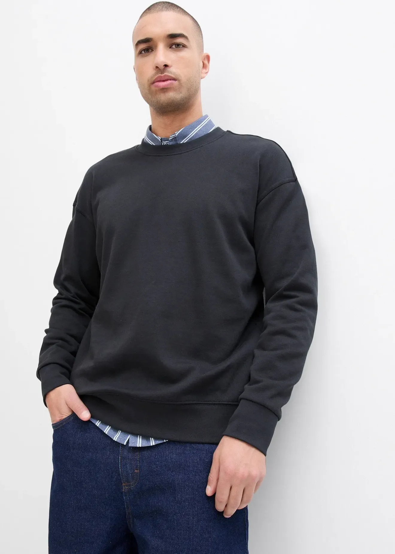 Sweat 100% coton basique à épaules descendues, intérieur gratté doux