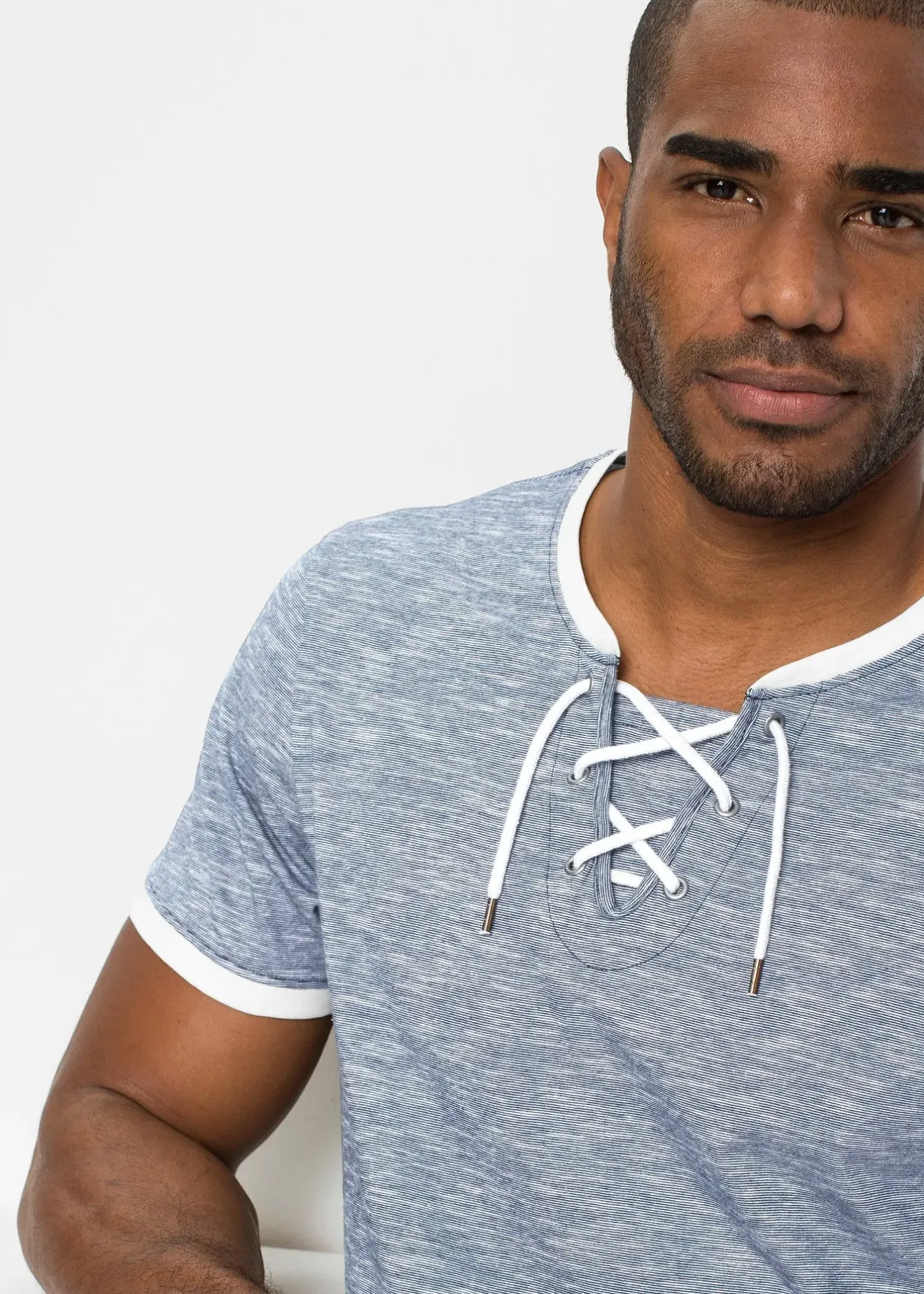 T-shirt chiné moderne avec laçage et col V tendance