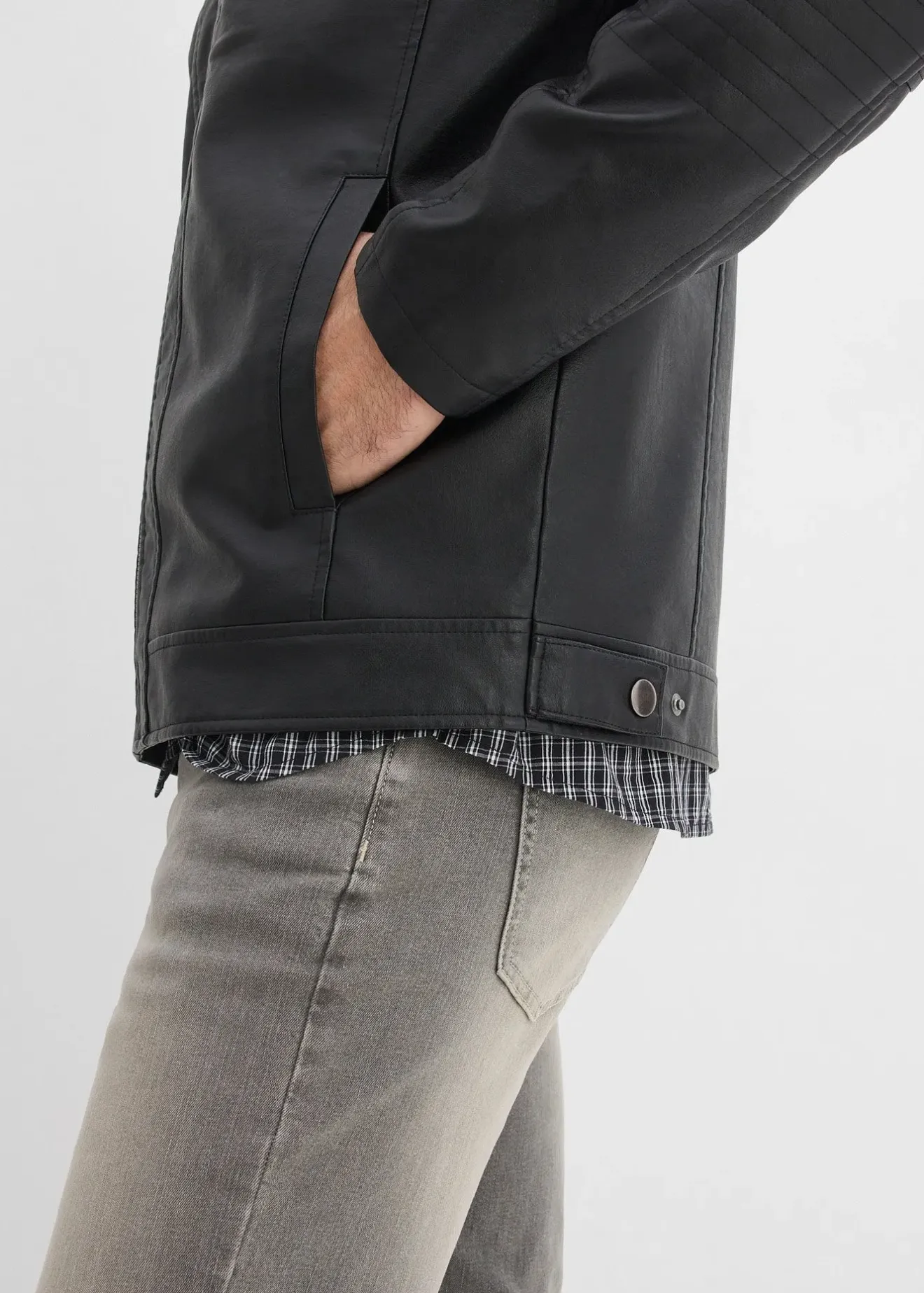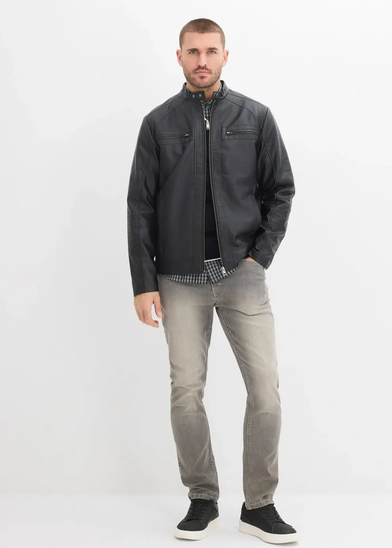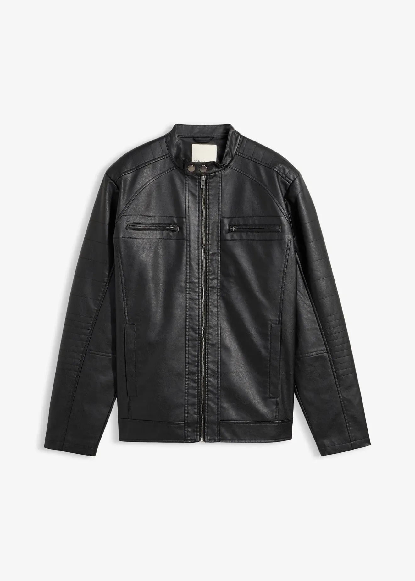 Veste biker cool avec col montant, poches zippées, empiècements piqués et look used tendance