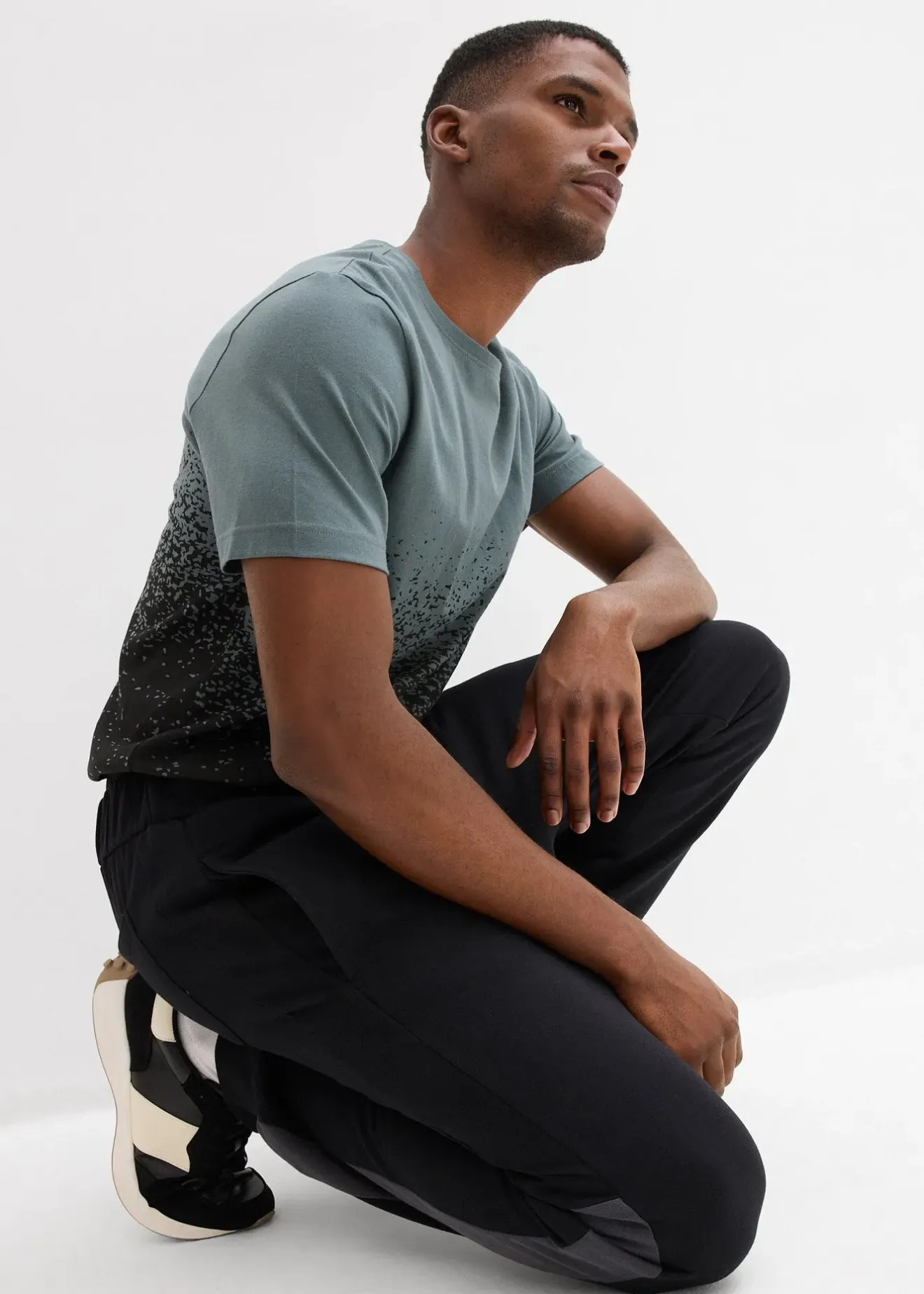 Pantalon de jogging moderne avec inscription et empiècement contrastant sur la jambe, intérieur gratté doux