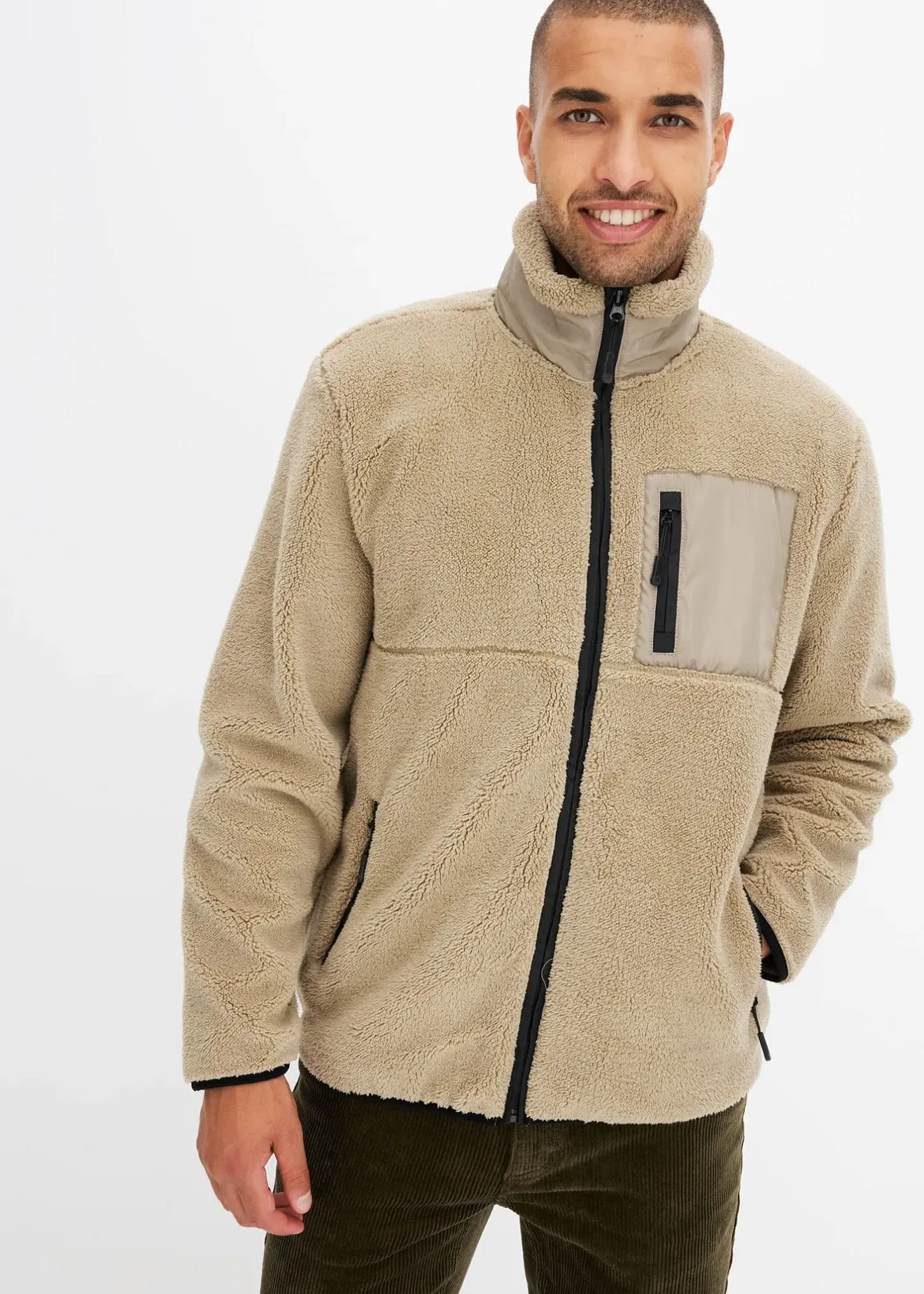 Veste chaude et tendance en polaire peluche avec deux fermetures zippées sur le côté