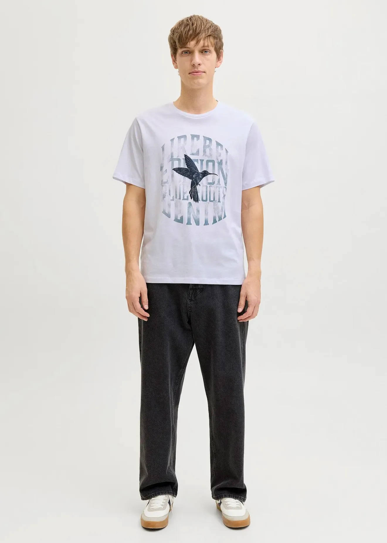 T-shirt JJ REBEL décontracté, longueur classique, style streetwear, disponible en grandes tailles